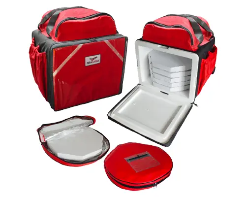 Bolsa para Pizza: 1 Pizza (8 pedaços); 2 Pizzas (8 pedaços) ou 1 Pizza (12 pedaços).