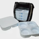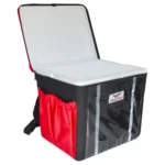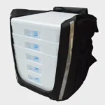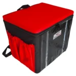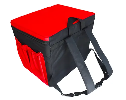 Mochila Marmitex para 12, 16, 20 ou 24 marmitas: Lona preta ou Nylon preta e vermelha.